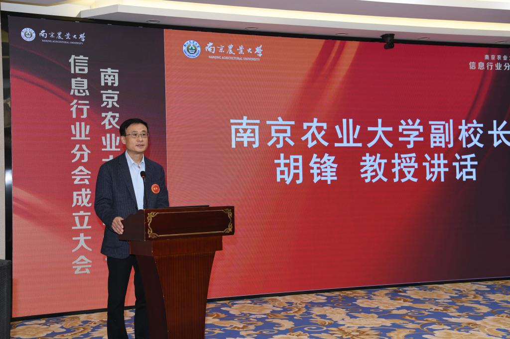 最后,南京农业大学副校长胡锋为大会作总结发言。他指出,信息行业校友分会的成立是信息管理学院发展历史上的一个重要里程碑,他代表学校党委和行政以及校友总会对信息行业校友分会的成立和首届理事会的组建表示热烈祝贺。他指出,正是由于三十余年来代代信息人和一线信息系教师的不懈努力,我校的信息专业才能逐渐发展壮大,跻身国家一流学科,对此他表示由衷的感谢。他希望信息行业校友分会在总会的指导下,规范管理,发挥学校学科优势,服务社会建设,希望校友牢记“诚朴勤仁”校训精神和“开放包容,合作共促”的校友理念,多与学校相关职能部门合作交流,促进科技成果快速转化,实现校友个人和学校事业共同发展。