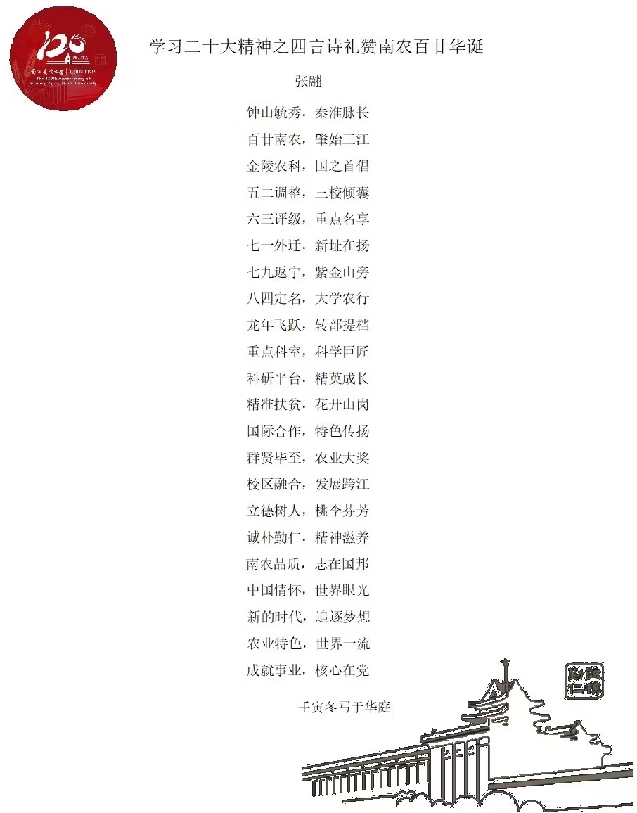 学院广大教职工积极参与本次活动,大家围绕“礼赞二十大、喜迎百廿庆、奋进新征程、踔厉向未来”主题,充分结合家国情怀、校史校训等元素,提交了主题鲜明、观点正确、内涵深刻的作品。其中,部分教职工采用诗歌、散文的形式来礼赞党的二十大风采,有的教职工采用绘画、书法的形式来庆祝南农120周年华诞,还有的教职工采用视频配音的形式来表达踔厉奋进的决心。