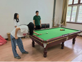 共有十多名教职工报名参加了台球比赛。本次比赛分男女组,采用中式黑八比赛规则,采取循环赛计算成绩。赛场上每名选手都认真对待,不停走动查看最佳击球点,架杆、出杆、撞球、落袋,潇洒的身影成为一道道特别的风景,定格在大家的眼中。