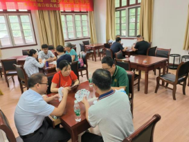 教职工掼蛋比赛在浦口校区工会棋牌室举办。比赛采取计时与计局相结合的赛制。各组选手密切配合、精确计算、沉着应战,对阵双方展牌技、比智慧,赛成绩、促友谊,比赛现场气氛欢快,精彩纷呈,其乐融融。经过激烈的角逐,共有12对选手分获一、二等奖。