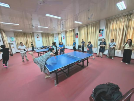在乒乓球比赛中,共有二十多名教职工报名参赛,本次比赛按男女分组,每组采取循环赛计算总成绩。参赛选手以饱满的精神状态投入比赛中,展现出较高的球技和勇于拼搏的精神。场上裁判员和工作人员认真负责,热情服务。场边观众不时为选手加油助威。