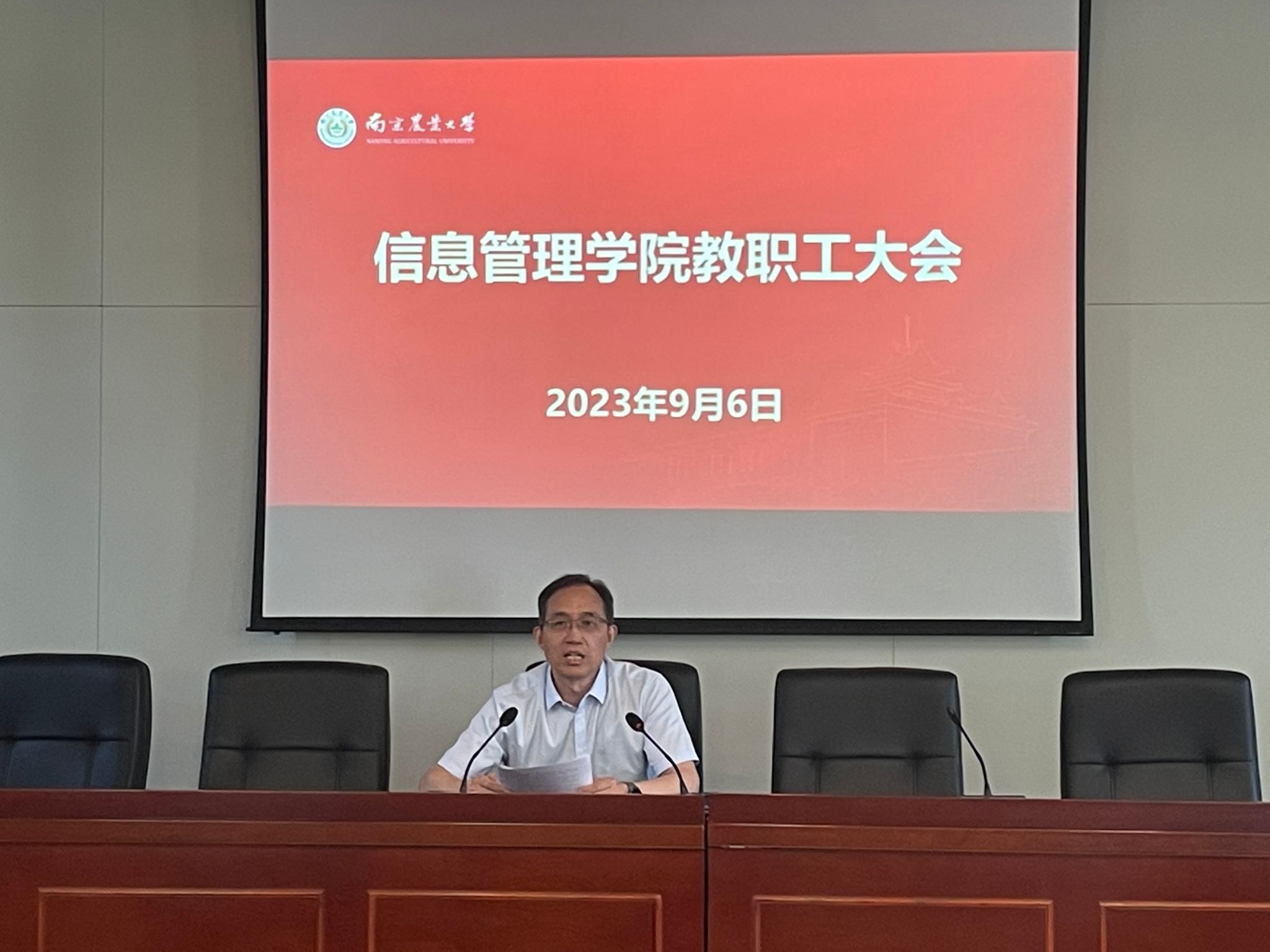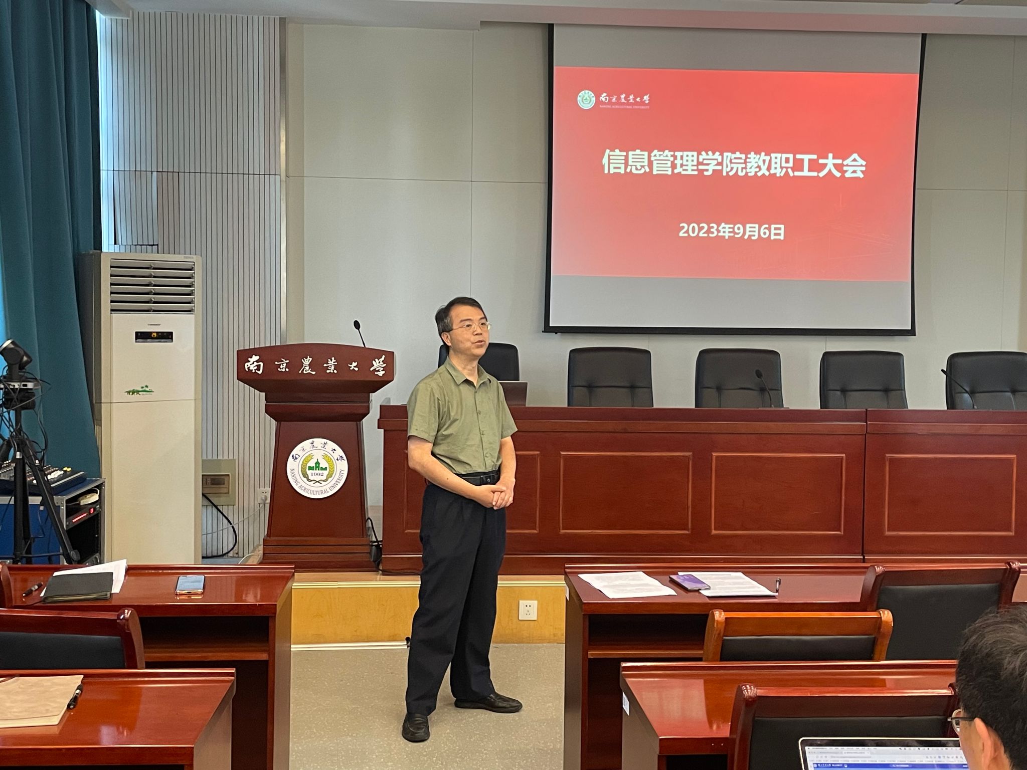 院长张兆同教授传达了中共南京农业大学第十二届委员会第十四次全体(扩大)会议精神,领学了校党委书记王春春《牢牢把握强国建设要求加快农业特色世界一流大学建设步伐》、校长陈发棣《敢为善为实干担当走出建设农业特色世界一流大学的新路》大会报告。张院长要求全体教职工认真领会大会报告,坚持以人才培养为立院之本,科学研究为强院之路;凝聚共识、同心同德;一起推动学院高质量发展。本学期学院将重点做好以下工作:一、持续推进学科建设发展和交叉融合;二、强化激励机制,完善制度、规章;三、着力考核业绩,提升工作实效;四、全院凝心聚力推动就业率稳步提升。