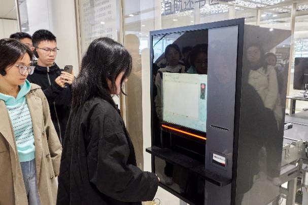 跟随者工作人员的细致讲解,师生们踏入南京江北图书馆的那一刻,立即被大厅内四面巍峨矗立的巨型书墙所吸引,这些书墙不仅是知识的宝库,更是心灵的栖息地,为在场的每一位师生带来了视觉与心灵的双重震撼。大厅里,集借阅、导航、互动问答、信息咨询等多功能于一身的智能化机器人,以及全国首屈一指的智能立体轨道分拣系统,共同展现了图书馆智慧服务的未来图景。师生们亲眼见证了科技与文化融合的魅力,深刻感受到了江北图书馆在提升公共文化服务水平方面的探索与成就。