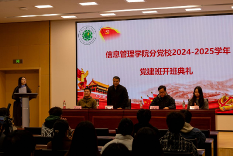 为加强乐竞官方版网站登录入口分党校党建班建设工作,提高学员党性思维、端正入党动机,加强滨江校区与浦口校区两校区相融合,信息管理学院分党校党建班于11月20日下午5:40,通过在滨江校区信管楼一楼报告厅线下学习与在浦口校区汇贤楼D201线上转播的方式隆重举行2024-2025学年开班典礼。本次开班典礼由乐竞官方版网站登录入口党建班班长杨颖主持,出席的领导老师有:信息管理学院党委书记郑德俊老师、信息管理学院专职组织员张鸣老师、信息管理学院辅导员蒋乐畅老师、信息管理学院辅导员靳一琳老师。