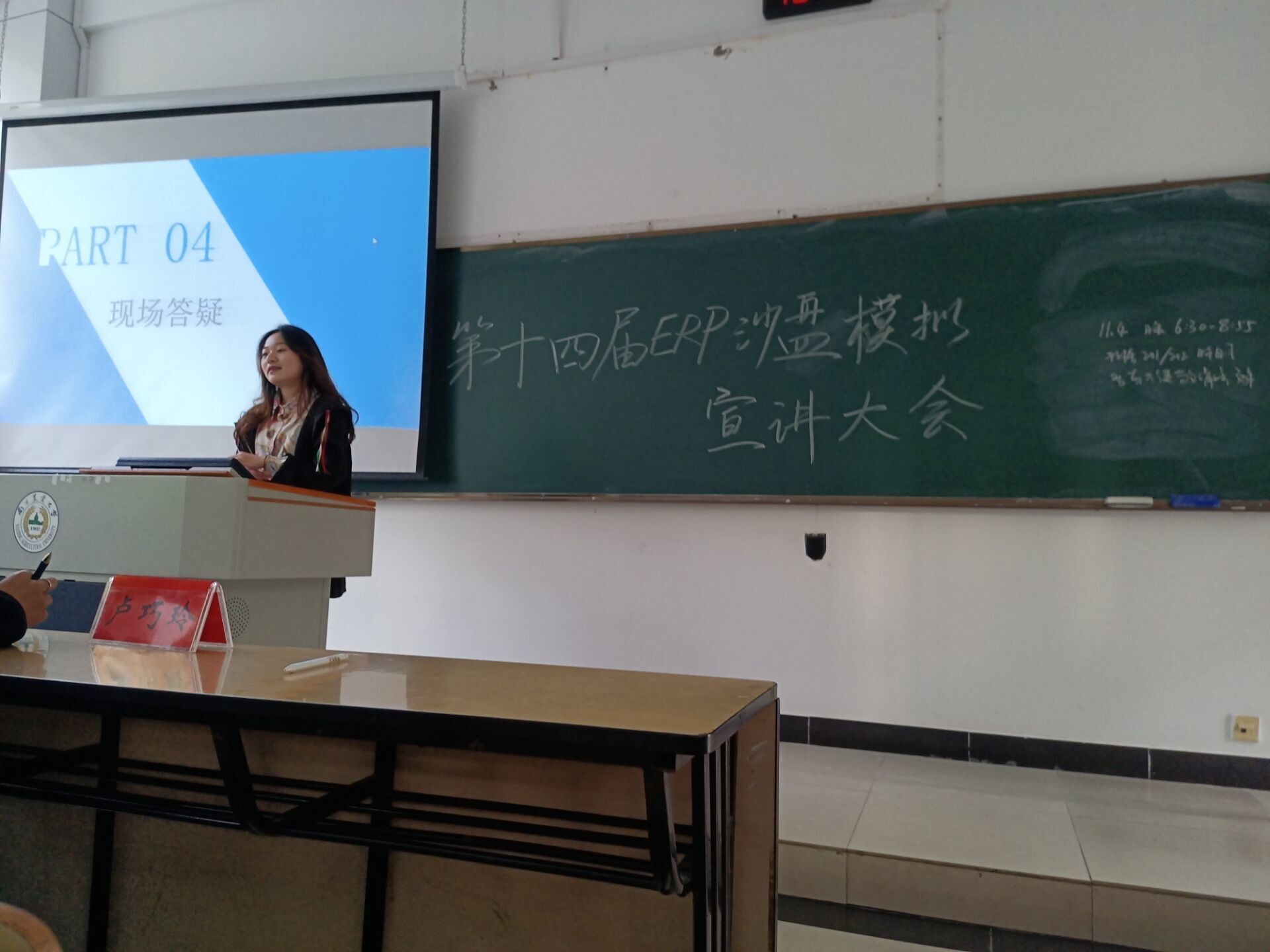 11月4日下午,在汇贤楼B102举办宣讲会。辅导员刘泽昊、院赛裁判卢巧玲及220余名参赛人员参加本次宣讲会,并做赛前动员,帮助参赛人员树立了信心。为加强参赛人员对ERP沙盘模拟比赛的认识与了解,11月7、8、14日,物流协会在汇贤楼分别举办了三次培训会,分别由ERP院队成员斛如晗、刘孟阳、卢巧玲担任主讲人。11月18日的笔试进行赛前筛选,共有36支队伍成功晋级到21、22日的初赛,初赛中,18支队伍晋级到28日的复赛,12支队伍晋级到12月5日的决赛,根据得分评出最终的奖项。
