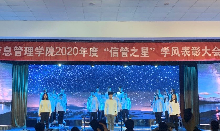 表彰大会随着工程管理201和202班精心准备的开场舞蹈《我们都是追梦人》拉开帷幕。大会共分为三个篇章:梦启信管、星潮澎湃、群星荟萃。
