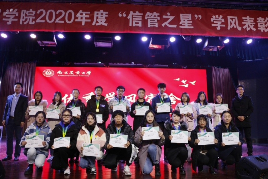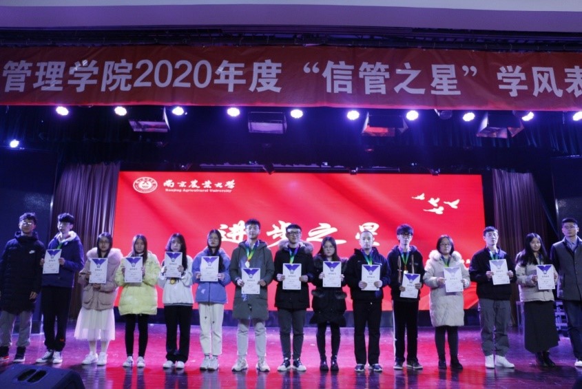 为表彰先进,树立典型,信息管理学院于2020年12月16日在浦口校区大学生活动中心召开2020年度“信管之星”学风表彰大会,对在学习方面有突出表现的个人和集体进行表彰。信息管理学院副院长(主持工作)张兆同教授、副院长李静教授、党委副书记王春伟老师、辅导员姜晓玥老师、李杭耘老师、吴沐原老师和刘泽昊老师出席本次表彰大会。