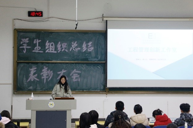 青年媒体中心代表张静怡在总结汇报中提出“扬长补短,从小事做起,让优秀变成一种习惯”的温馨寄语;科技创新协会会长周于皓关于科技创新比赛和未来职业规划方面做相关总结;物流协会代表杨紫珺总结了本学期以来校内外精彩的活动和与高校交流活动的丰富收获;IE学社代表刘圣洁汇报了学社内工作任务并提出对未来工作的展望,最后工程管理协会代表房小小做工作总结,她将一些培训和交流工作中获得的经验一并分享给大家。各组织部总结完毕后,辅导员李杭耘老师就各支部的汇报总结方面发表讲话。她表扬了各个组织部门,对各部门提出新的期望,也鼓励同学们开拓创新新,传承经典,积极乐观,昂扬向上。