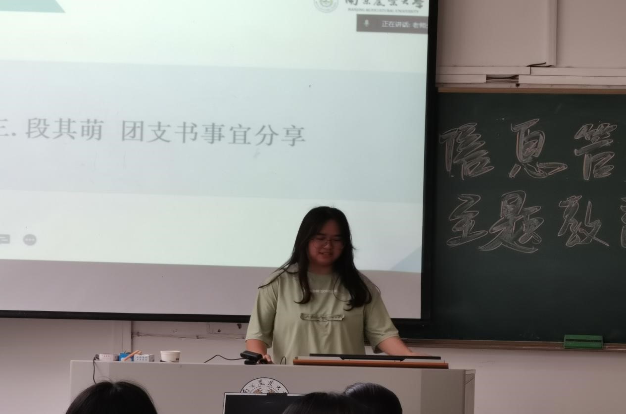 会议第三项议程由段其萌介绍团支书相关事宜。段其萌先是对学院本学期团委工作进行了总结,并就学院未来团务工作对各班级团支书进行了讲解,着重讲解了2022届学生团务助理选拔和暑期社会实践活动中团支书的工作职责,鼓励各团委对学院发展提出建议。