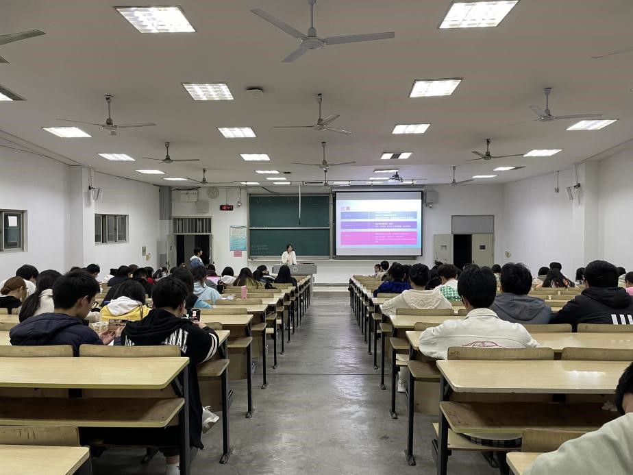 讲座中,张旭垭分别从“学习态度”“课程细分”“其他”(综测加分、奖学金和比赛等方面的经验分享)“一件很重要的事”(精神上不内耗的心理调节)四个部分来进行讲解。并以“专业学习”为中心,强调了英语学习的重要性以及学习方法,最后鼓励同学们继续努力,帮助尚未明确目标学生确定方向。